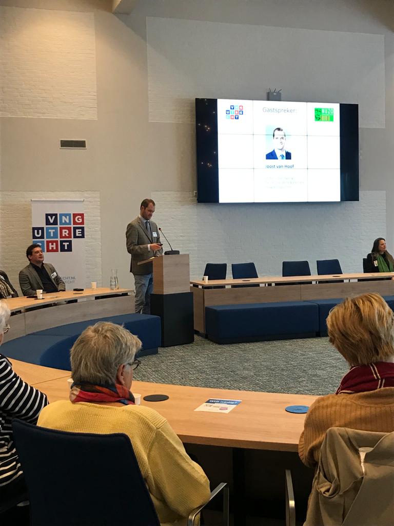 Sybren van der Velden Walda kreeg vervolgens het woord. Hij is fractievoorzitter van de VVD in Wijk bij Duurstede en landelijk projectleider bij de Nationale Politie met onder andere senioren en veiligheid in zijn portefeuille. Veiligheid van senioren is een belangrijk aandachtspunt in het seniorvriendelijk maken van gemeenten, benadrukte hij, omdat de groep steeds groter en ook steeds kwetsbaarder wordt. “In bepaalde vormen van criminaliteit zijn senioren als slachtoffer oververtegenwoordigd. Bij babbeltrucs bijvoorbeeld, maar ook als er woninginbraken zijn waarbij sleutelkluisjes zijn opengebroken.”